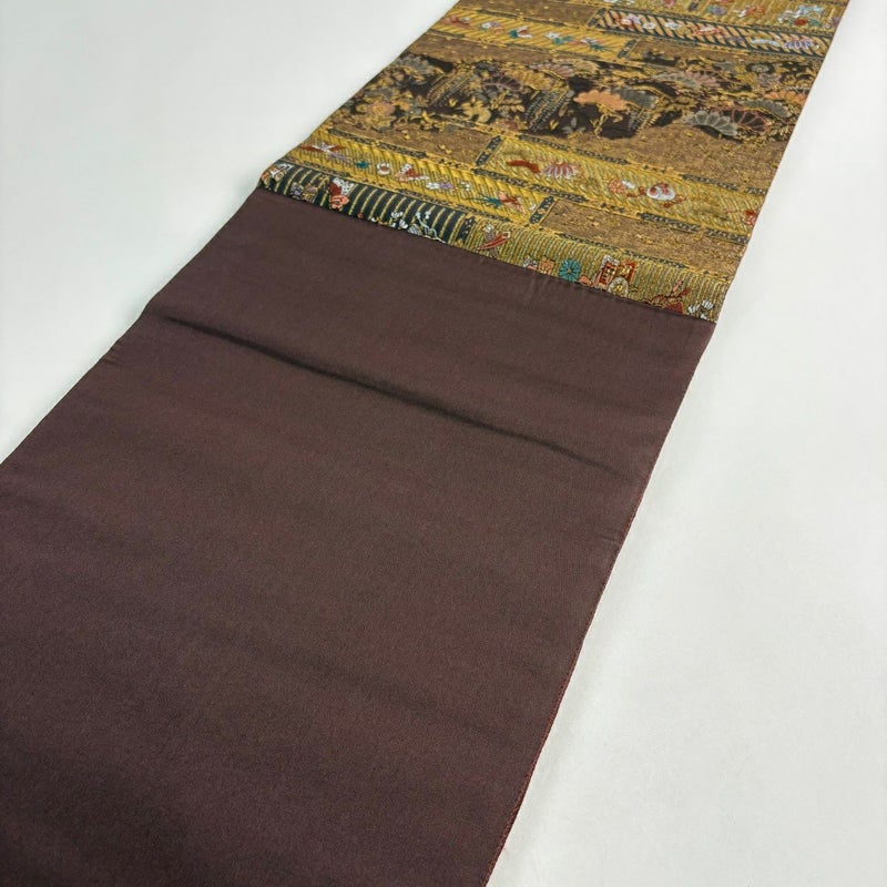 【袋帯】 茶系 焦茶色 秀品 A 帯丈426cm~435cm 7990-9980 美品 二万以下