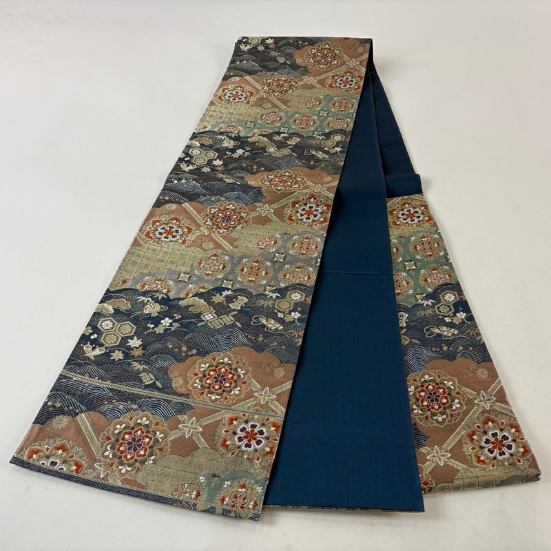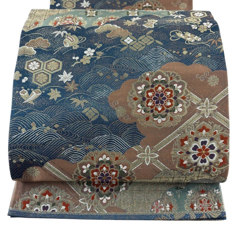【袋帯】 青系 紺色 秀品 A 帯丈426cm~435cm 7990-9980 美品 二万以下