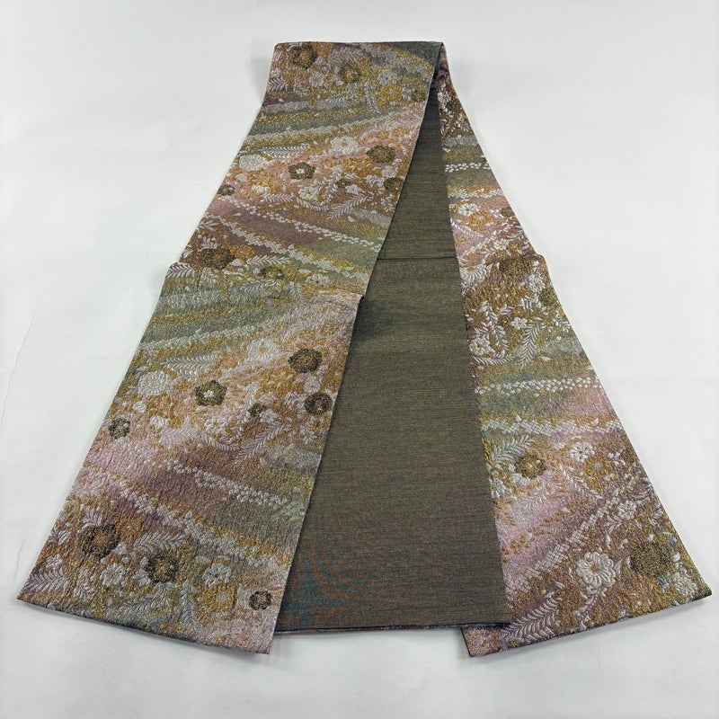 【着物ランク】秀品 【素材】正絹 【帯丈】約460cm 【帯幅】約30.5cm 【帯仕立て】仕立て上がり 【状態ランク】ランクA 【帯着用シーン】セミフォーマル(色無地・付下げ)
