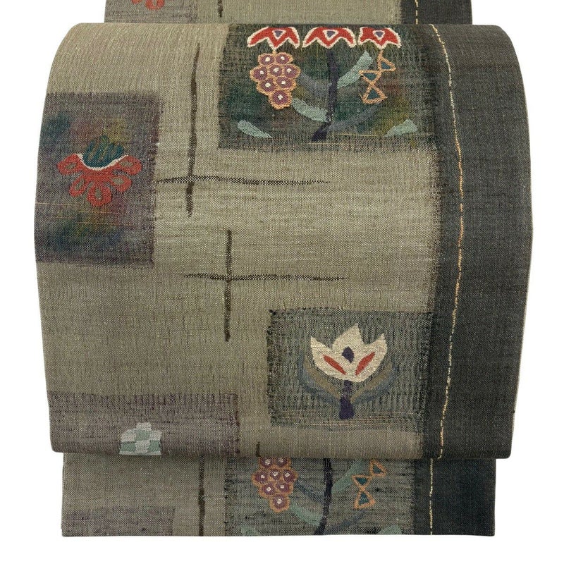 【袋帯】 茶系 茶緑色 秀品 A 帯丈436cm以上 7990-9980 美品 二万以下