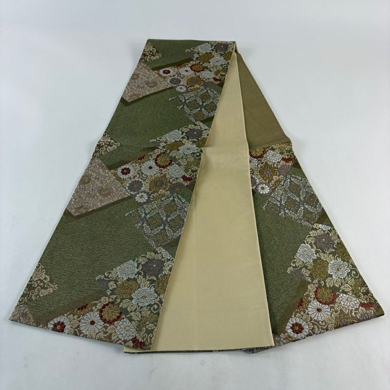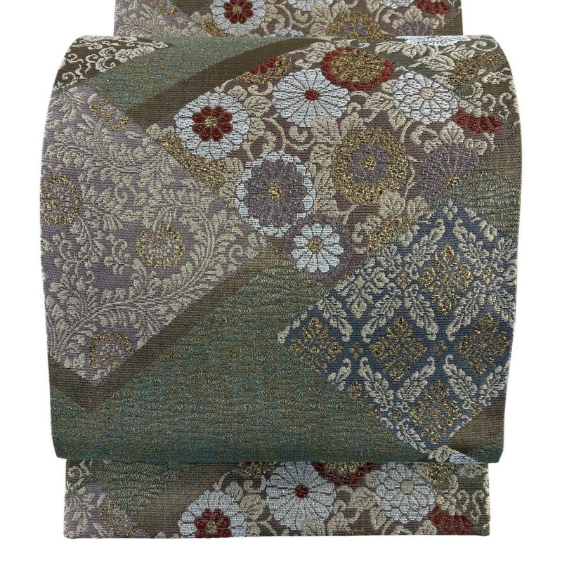 【袋帯】 灰色系 灰緑 秀品 A 帯丈426cm~435cm 7990-9980 美品 二万以下