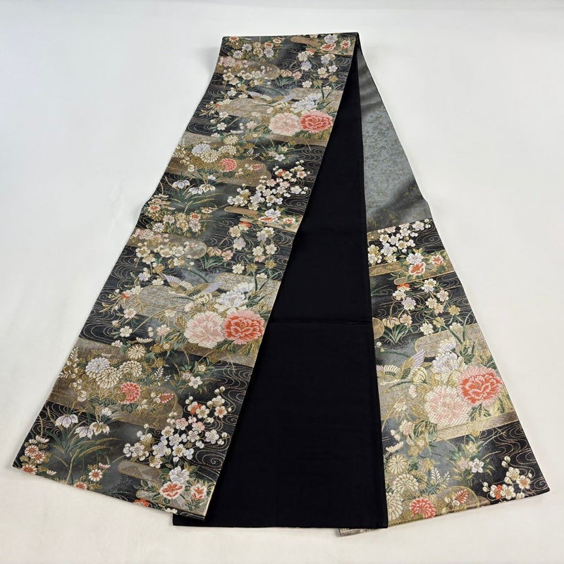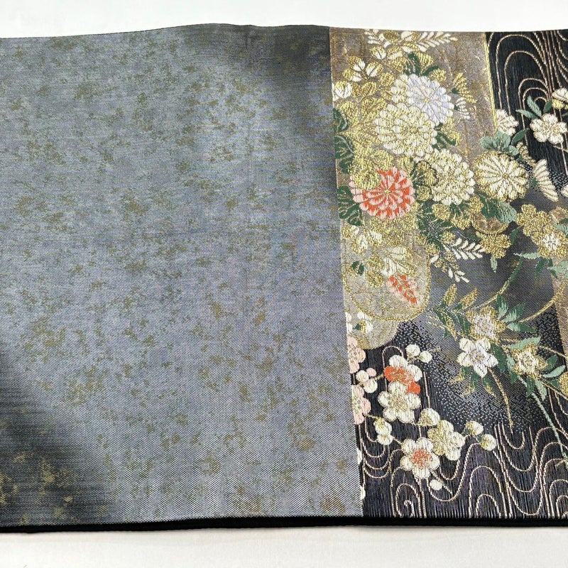 【袋帯】 灰色系 黒灰 秀品 A 帯丈436cm以上 7990-9980 美品 二万以下