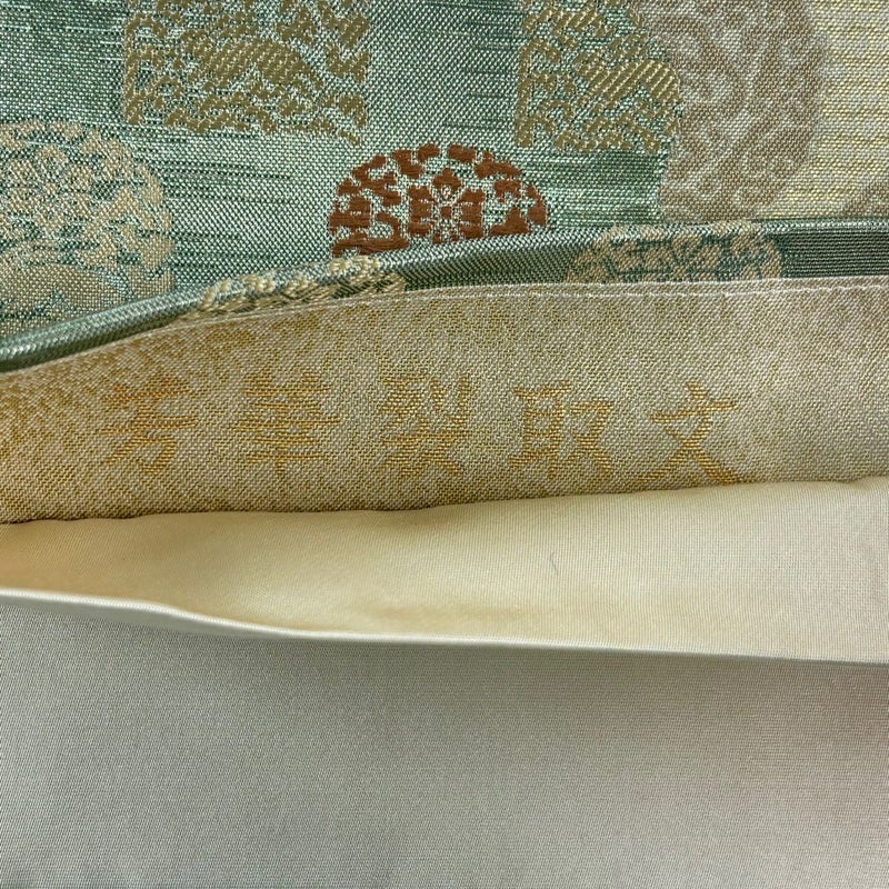 おめでたい席に相応しい意匠の袋帯でございます。 格式高いお席にもお使いいただけますので、お見逃しのないようお願いいたします。 締め跡がございます。 中無地所々に箔の変色がございます。 リユース品としては良い状態で、まだまだご活用頂けると思われます。 ※なお、厳しく商品の状態確認を行っておりますが、記載の汚れ以外にも見落とし箇所がある可能性がある旨ご了承いただけますと幸いです。 沢山の商品の中からご覧いただき誠にありがとうございます。