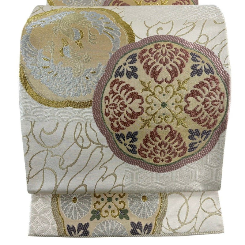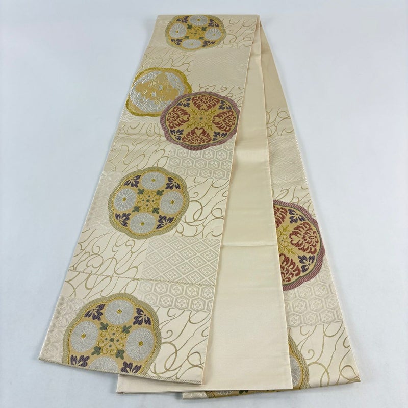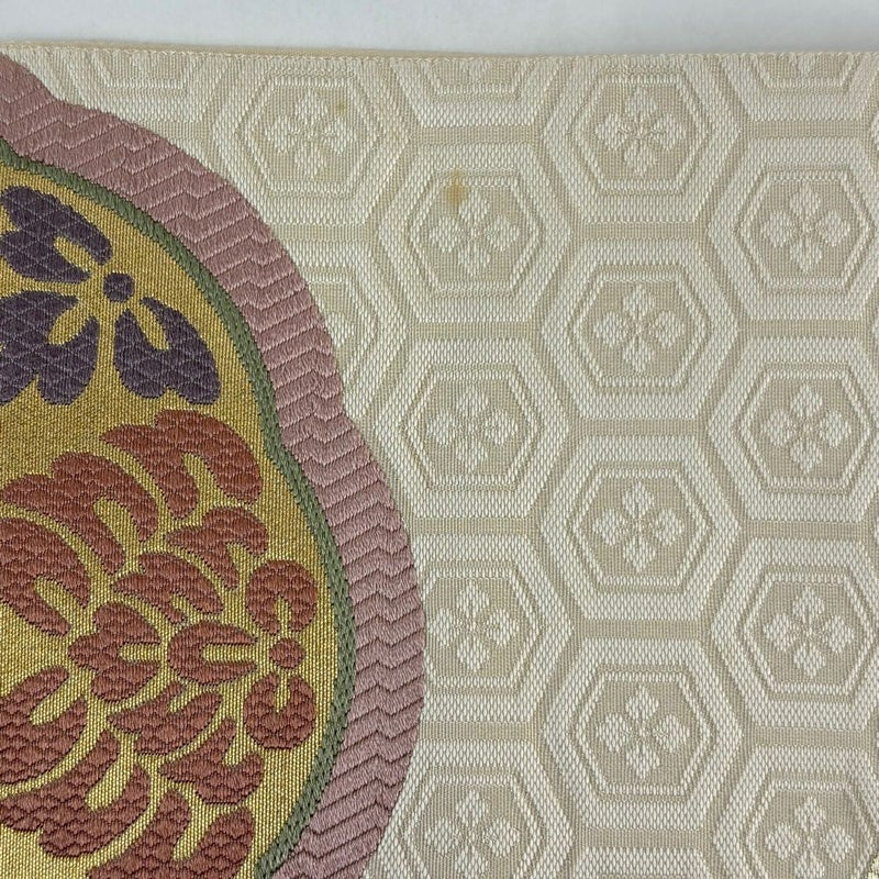 【袋帯】 白系 ベージュ 秀品 A 帯丈436cm以上 7990-9980 美品 二万以下