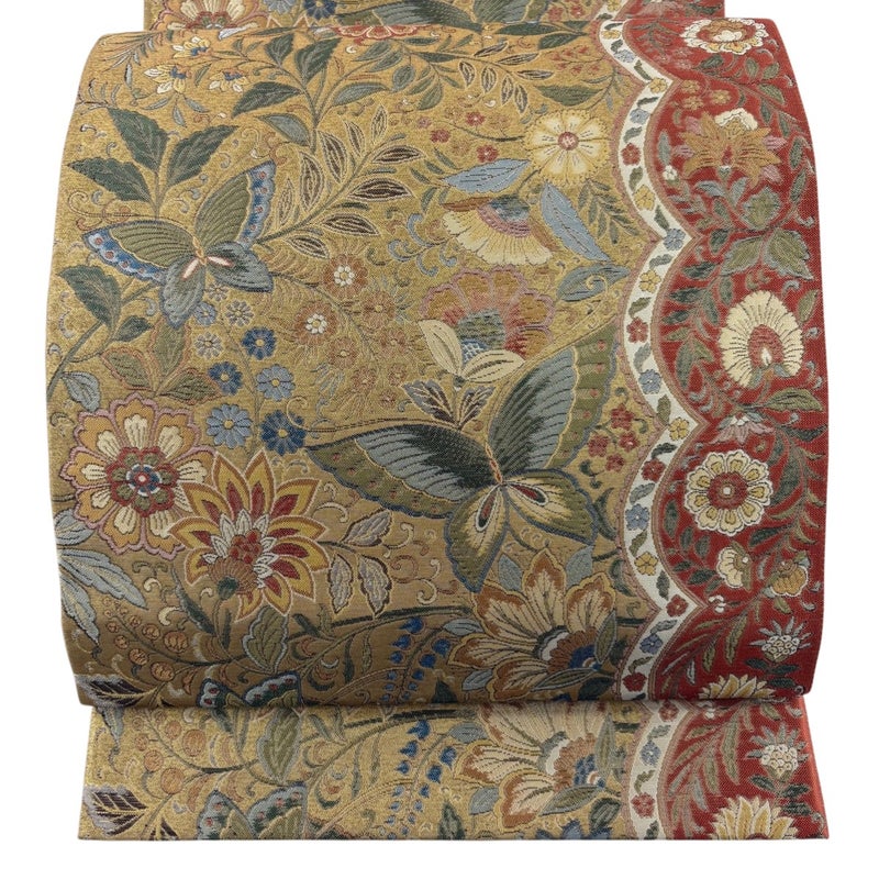 【袋帯】 黄色系 からし色 秀品 A 帯丈426cm~435cm 7990-9980 美品 二万以下