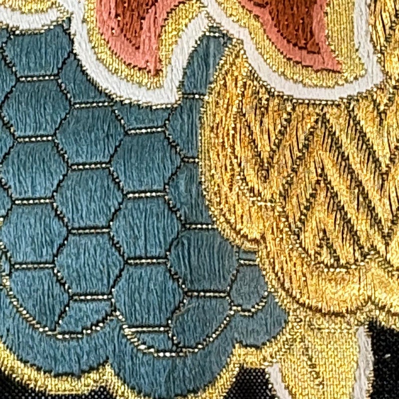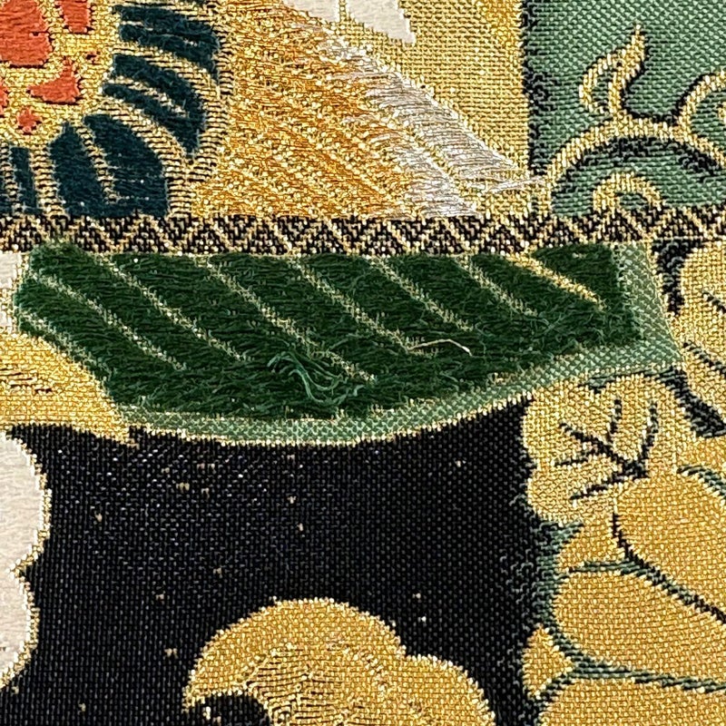 おめでたい席に相応しい意匠の袋帯でございます。 格式高いお席にもお使いいただけますので、お見逃しのないようお願いいたします。 締め跡がございます。 垂先と前柄に糸ゆるみがございます。 リユース品としては良い状態で、まだまだご活用頂けると思われます。 ※なお、厳しく商品の状態確認を行っておりますが、記載の汚れ以外にも見落とし箇所がある可能性がある旨ご了承いただけますと幸いです。 沢山の商品の中からご覧いただき誠にありがとうございます。 【PR2】