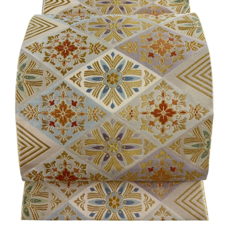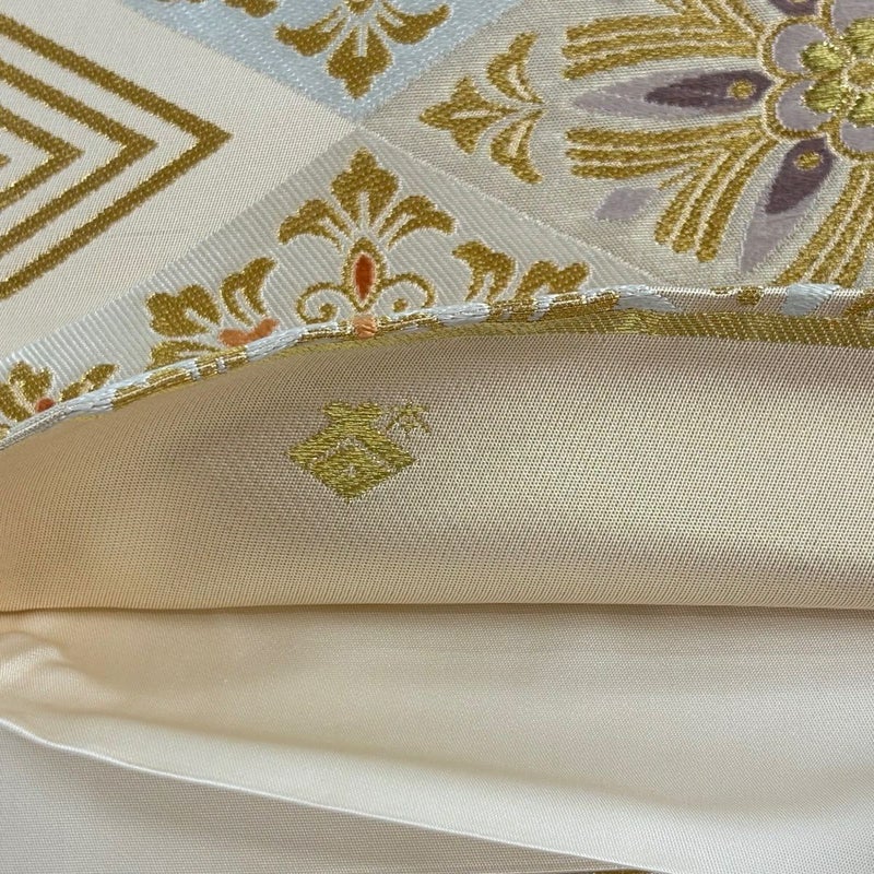 【着物ランク】名品 【素材】正絹 【帯丈】約438cm 【帯幅】約30.5cm 【帯仕立て】仕立て上がり 【状態ランク】ランクA 【帯着用シーン】フォーマル(留袖・振袖・訪問着)