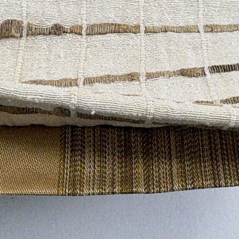 普段使いでお使いいただける袋帯でございます。 カジュアルな装いに合わせてお使いください。 締め跡がございます。 お太鼓垂先間に生地のヨレ、手先前柄間にシミがございます。 裏地所々に生地のヨレがございます。 リユース品としては目立った染み傷なく、状態の良いお品でございます。 ※なお、厳しく商品の状態確認を行っておりますが、記載の汚れ以外にも見落とし箇所がある可能性がある旨ご了承いただけますと幸いです。 沢山の商品の中からご覧いただき誠にありがとうございます。 【PR2】