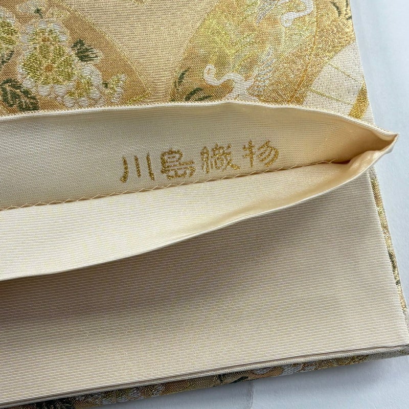 軍配マークと三本線が特徴の「川島織物」謹製の作品です。 おめでたい席に相応しい意匠の袋帯でございます。 格式高いお席にもお使いいただけますので、お見逃しのないようお願いいたします。 締め跡がございます。 リユース品としては目立った染み傷なく、状態の良いお品でございます。 ※なお、厳しく商品の状態確認を行っておりますが、記載の汚れ以外にも見落とし箇所がある可能性がある旨ご了承いただけますと幸いです。 沢山の商品の中からご覧いただき誠にありがとうございます。 【PR2】
