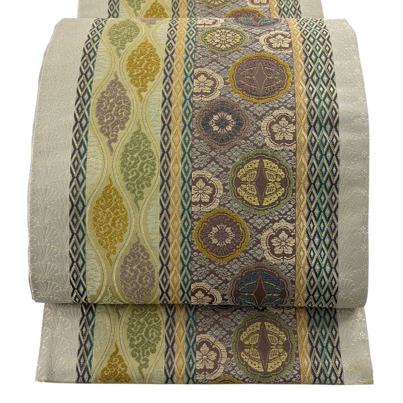【着物ランク】秀品 【素材】正絹 【帯丈】約428cm 【帯幅】約30.5cm 【帯仕立て】仕立て上がり 【状態ランク】ランクB 【帯着用シーン】セミフォーマル(色無地・付下げ)