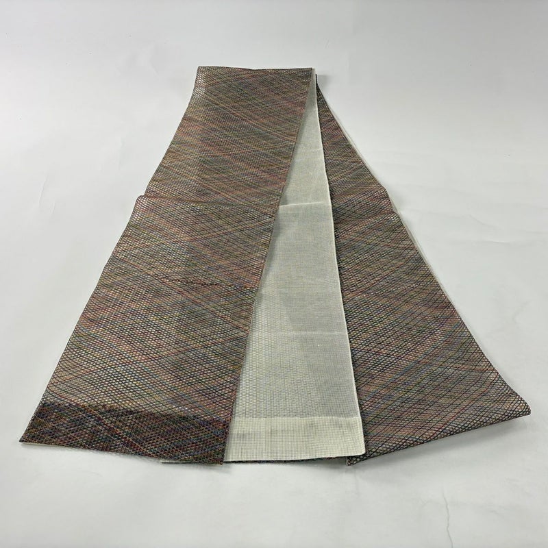 夏帯でございます。 普段使いでお使いいただける袋帯でございます。 カジュアルな装いに合わせてお使いください。 締め跡がございます。 前柄の帯縁に生地のヨレ、お太鼓垂先間に生地のたわみがございます。 リユース品としては良い状態で、まだまだご活用頂けると思われます。 ※なお、厳しく商品の状態確認を行っておりますが、記載の汚れ以外にも見落とし箇所がある可能性がある旨ご了承いただけますと幸いです。 沢山の商品の中からご覧いただき誠にありがとうございます。 【PR2】