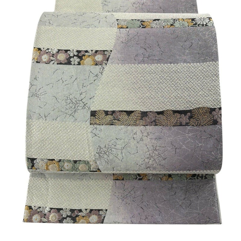 【袋帯】 灰色系 灰白 秀品 A 帯丈426cm~435cm 7990-9980 美品 二万以下