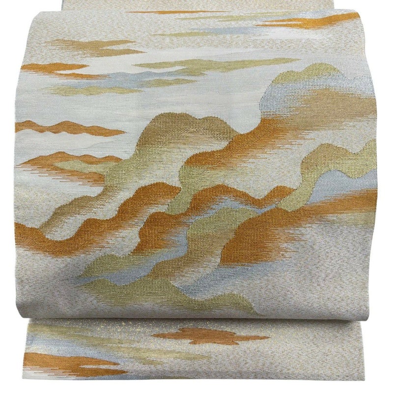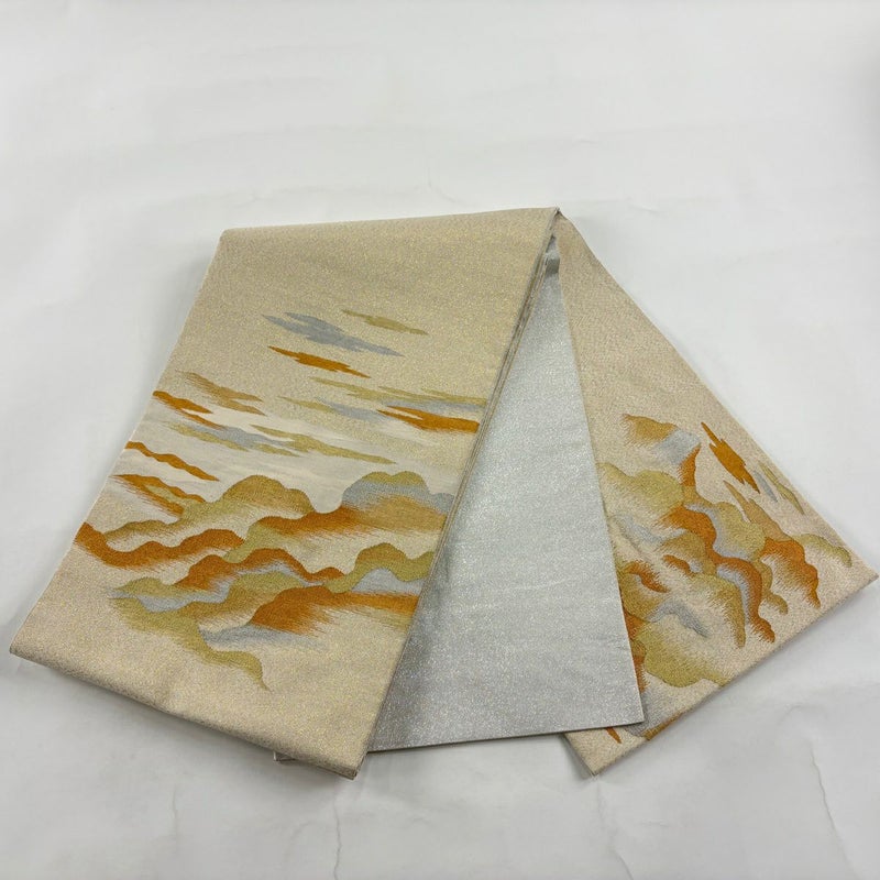 【袋帯】 白系 ベージュ 秀品 A 帯丈436cm以上 7990-9980 美品 二万以下