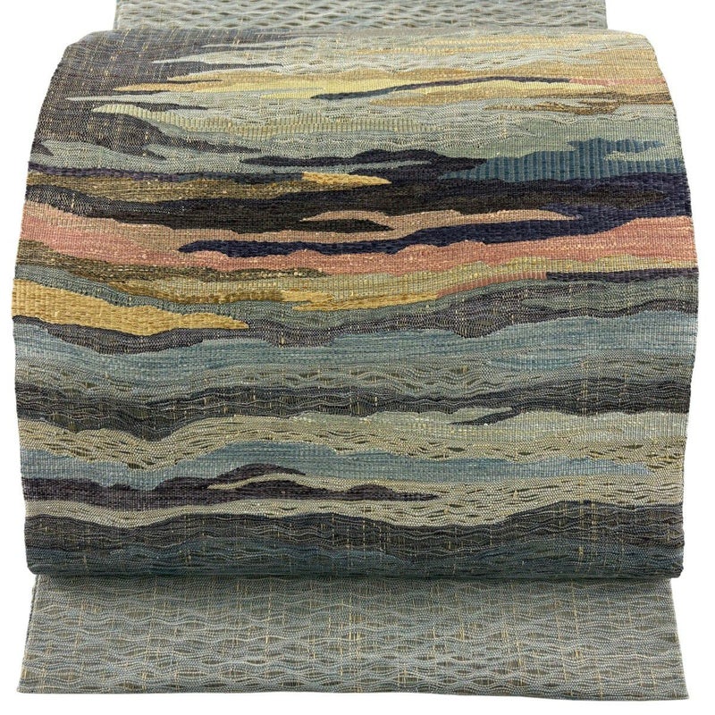 【袋帯】 灰色系 灰緑 秀品 A 帯丈436cm以上 7990-9980 美品 二万以下