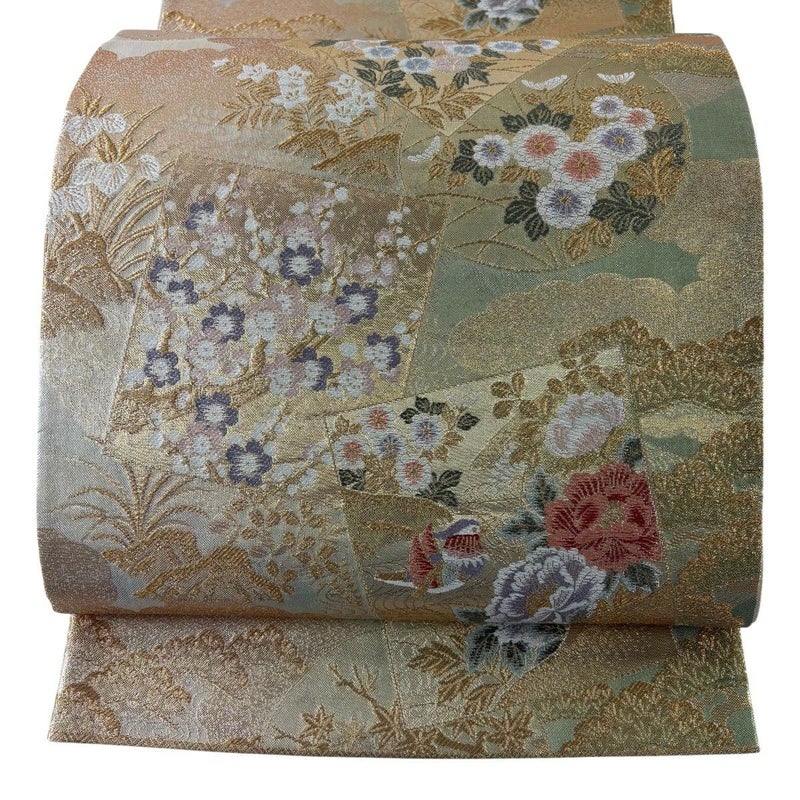 【着物ランク】秀品 【素材】正絹 【帯丈】約436cm 【帯幅】約31.5cm 【帯仕立て】仕立て上がり 【状態ランク】ランクA 【帯着用シーン】フォーマル(留袖・振袖・訪問着)