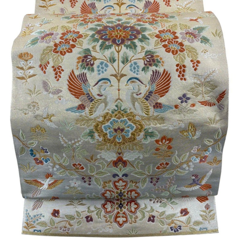 【着物ランク】名品 【素材】正絹 【帯丈】約434cm 【帯幅】約30.5cm 【帯仕立て】仕立て上がり 【状態ランク】ランクB 【帯着用シーン】フォーマル(留袖・振袖・訪問着)