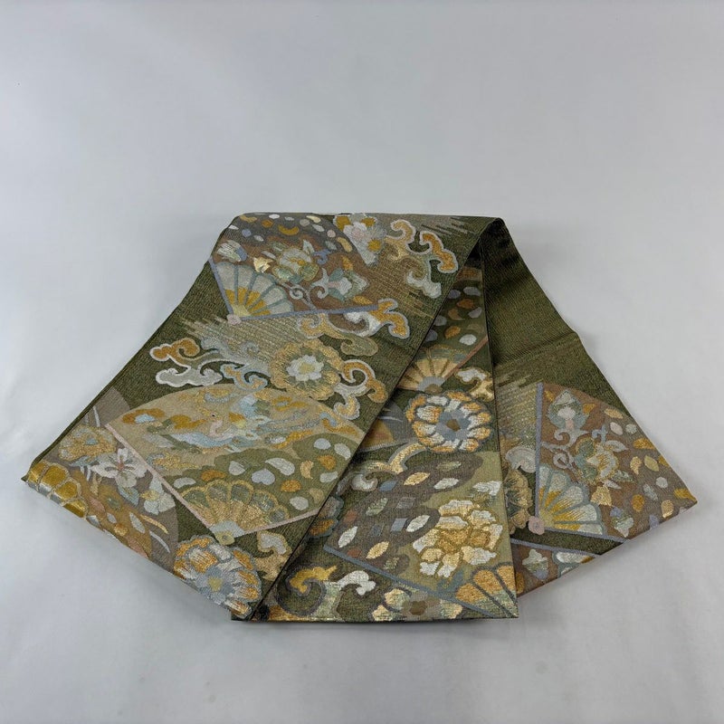 【袋帯】 灰色系 灰緑 名品 A 帯丈436cm以上 9990-29990 美品 二万以下