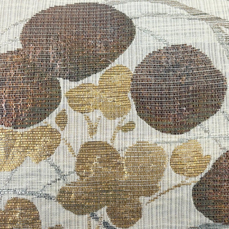 セミフォーマルでお使いいただける袋帯でございます。 見る人に重たい印象を感じさせない女性ならではの、気品豊かな一品です。 帯芯が入っておりません。 締め跡がございます。 表地所々に箔のヨレ、表地所々にヤケ、前柄所々にシミ、表地所々に箔の変色がございます。 裏地所々にヤケがございます。 リユース品としては良い状態で、まだまだご活用頂けると思われます。 ※なお、厳しく商品の状態確認を行っておりますが、記載の汚れ以外にも見落とし箇所がある可能性がある旨ご了承いただけますと幸いです。 沢山の商品の中からご覧いただき誠にありがとうございます。