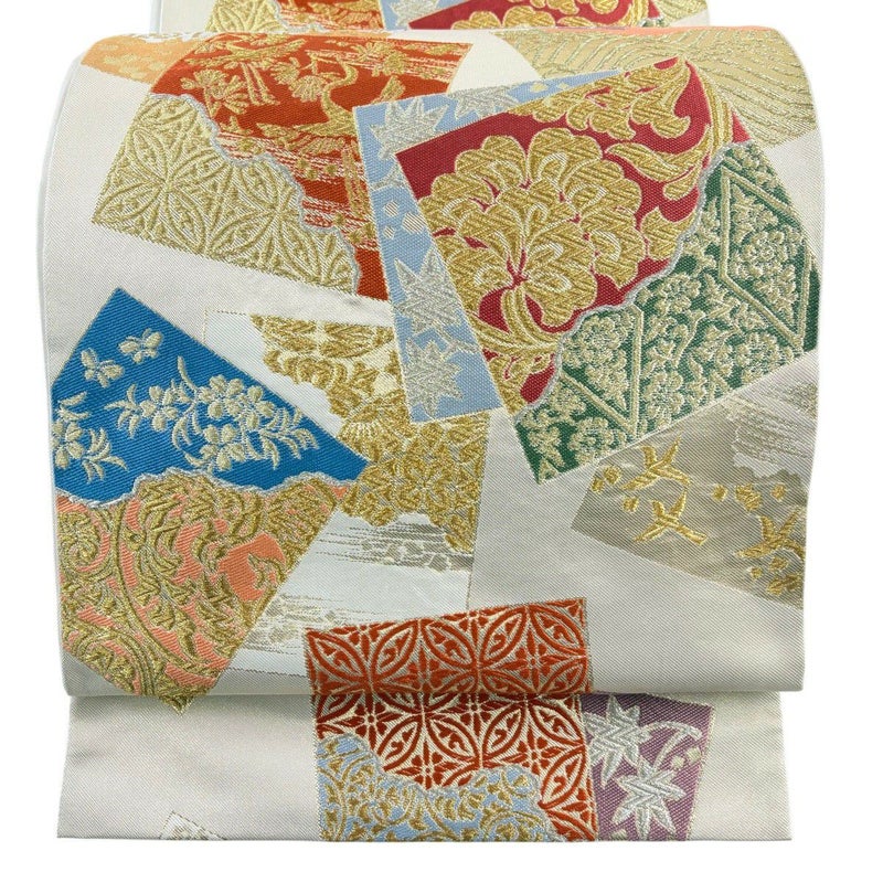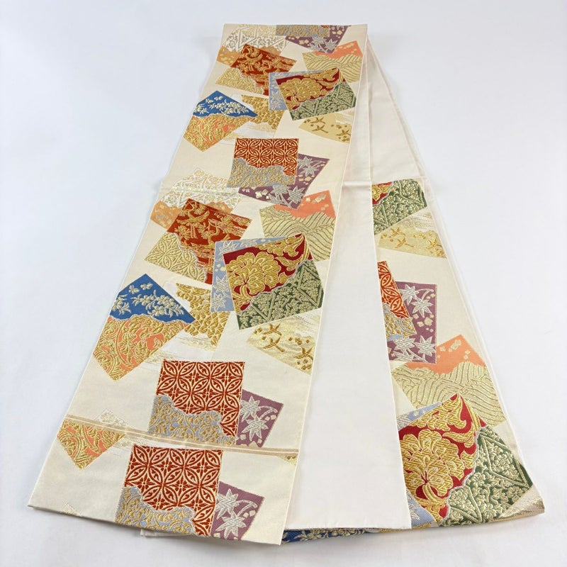 【袋帯】 白系 ベージュ 秀品 A 帯丈401cm~425cm 7990-9980 美品 二万以下