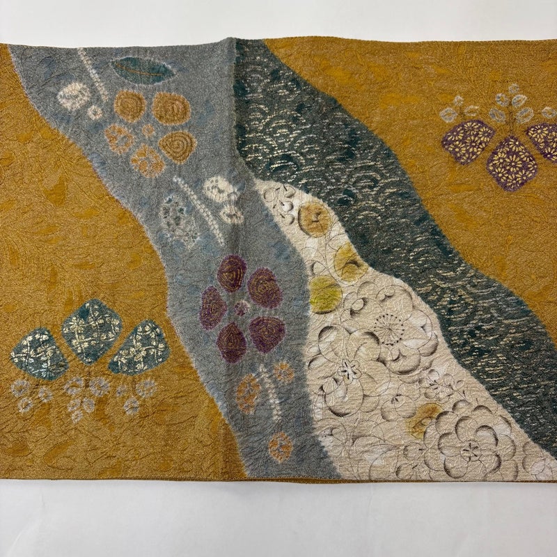 セミフォーマルでお使いいただける袋帯でございます。 見る人に重たい印象を感じさせない女性ならではの、気品豊かな一品です。 締め跡がございます。 垂先とお太鼓と前柄に金銀彩の変色がございます。 リユース品としては良い状態で、まだまだご活用頂けると思われます。 ※なお、厳しく商品の状態確認を行っておりますが、記載の汚れ以外にも見落とし箇所がある可能性がある旨ご了承いただけますと幸いです。 沢山の商品の中からご覧いただき誠にありがとうございます。 【PR2】