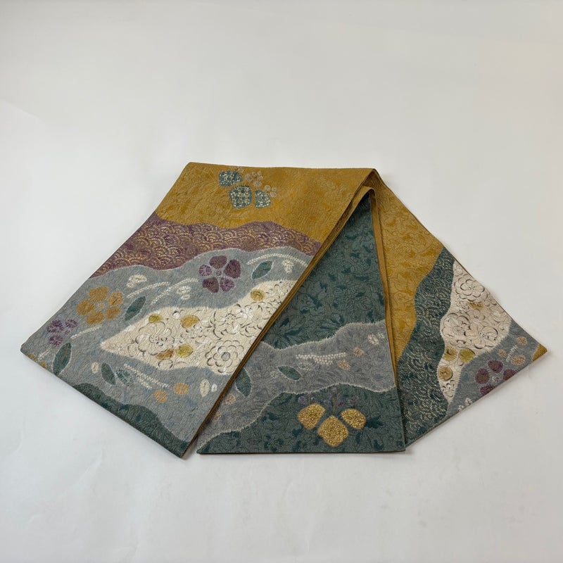 【袋帯】 灰色系 灰緑 秀品 B 帯丈436cm以上 4000-7980 二万以下