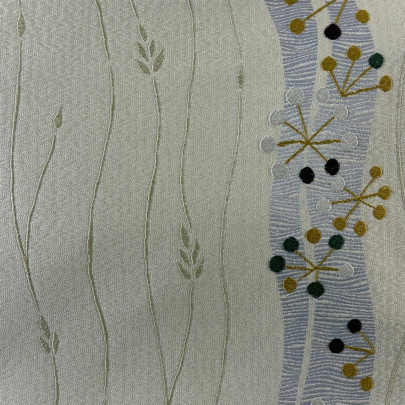 セミフォーマルでお使いいただける袋帯でございます。 見る人に重たい印象を感じさせない女性ならではの、気品豊かな一品です。 締め跡がございます。 お太鼓にシワがございます。 前柄にシミ、手先前柄間にシワ、表地所々に糸のほつれがございます。 リユース品としては良い状態で、まだまだご活用頂けると思われます。 ※なお、厳しく商品の状態確認を行っておりますが、記載の汚れ以外にも見落とし箇所がある可能性がある旨ご了承いただけますと幸いです。 沢山の商品の中からご覧いただき誠にありがとうございます。 【PR2】