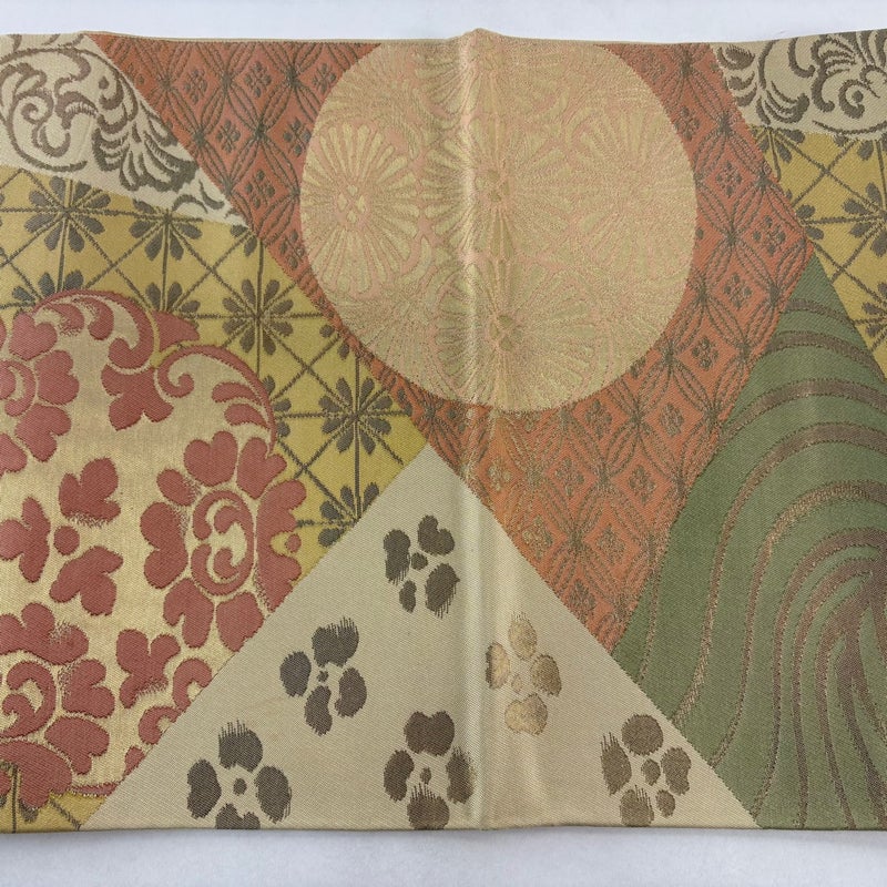 軍配マークと三本線が特徴の「川島織物」謹製の作品です。 セミフォーマルでお使いいただける袋帯でございます。 見る人に重たい印象を感じさせない女性ならではの、気品豊かな一品です。 締め跡がございます。 表地所々にシミ、表地所々に箔の変色がございます。 リユース品としては良い状態で、まだまだご活用頂けると思われます。 ※なお、厳しく商品の状態確認を行っておりますが、記載の汚れ以外にも見落とし箇所がある可能性がある旨ご了承いただけますと幸いです。 沢山の商品の中からご覧いただき誠にありがとうございます。 【PR2】