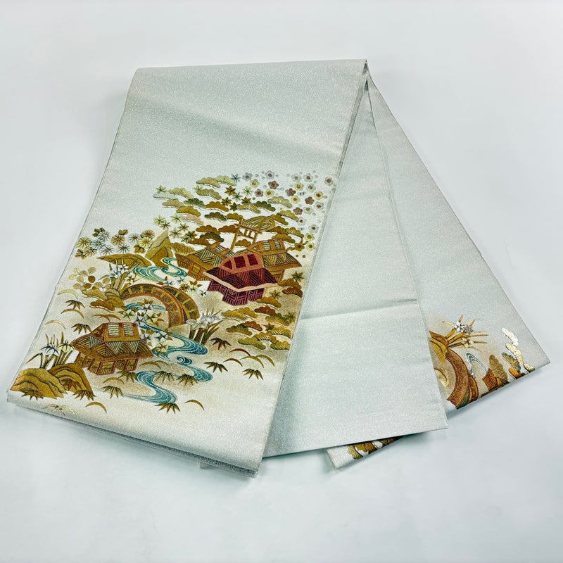 【着物ランク】秀品 【素材】正絹 【帯丈】約450cm 【帯幅】約30.5cm 【帯仕立て】仕立て上がり 【状態ランク】ランクC 【帯着用シーン】セミフォーマル(色無地・付下げ)
