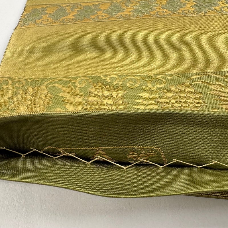 【袋帯】 緑系 抹茶色 秀品 A 帯丈436cm以上 7990-9980 美品 二万以下