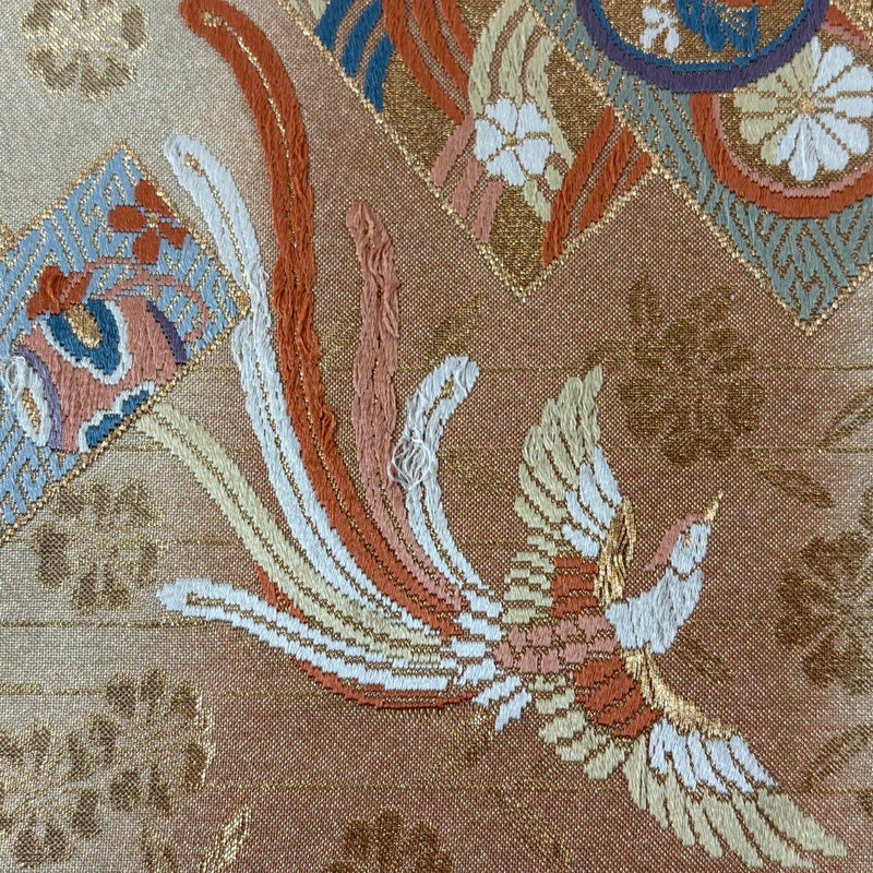 おめでたい席に相応しい意匠の袋帯でございます。 格式高いお席にもお使いいただけますので、お見逃しのないようお願いいたします。 締め跡がございます。 締め跡沿いにシワ、表地所々に唐織の糸ゆるみがございます。 リユース品としては良い状態で、まだまだご活用頂けると思われます。 ※なお、厳しく商品の状態確認を行っておりますが、記載の汚れ以外にも見落とし箇所がある可能性がある旨ご了承いただけますと幸いです。 沢山の商品の中からご覧いただき誠にありがとうございます。 【PR2】
