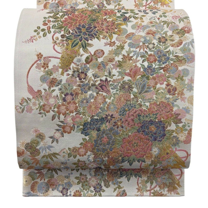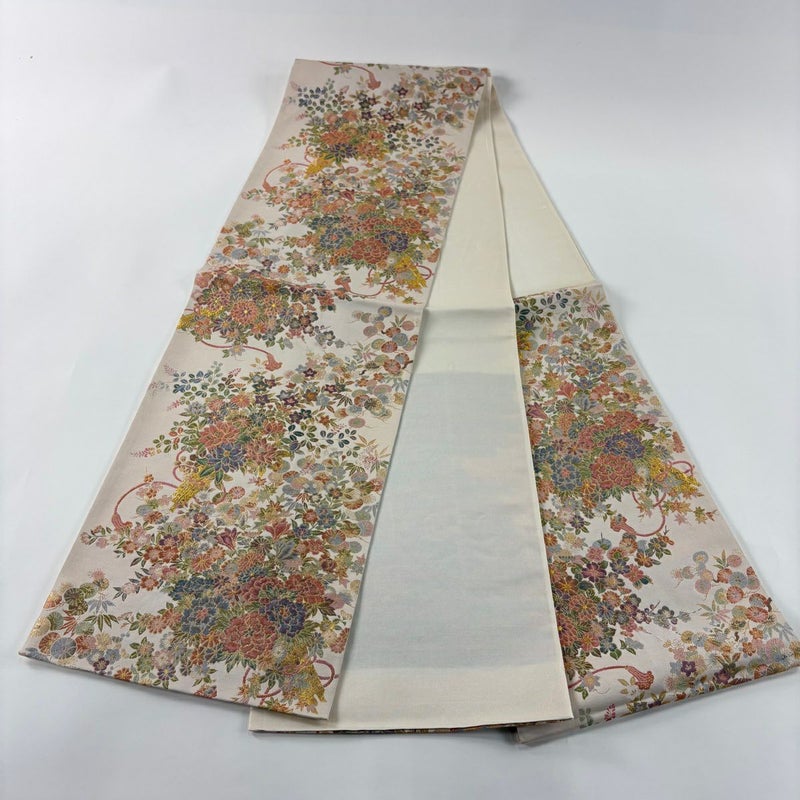 【袋帯】 白系 クリーム 秀品 A 帯丈401cm~425cm 7990-9980 美品 二万以下