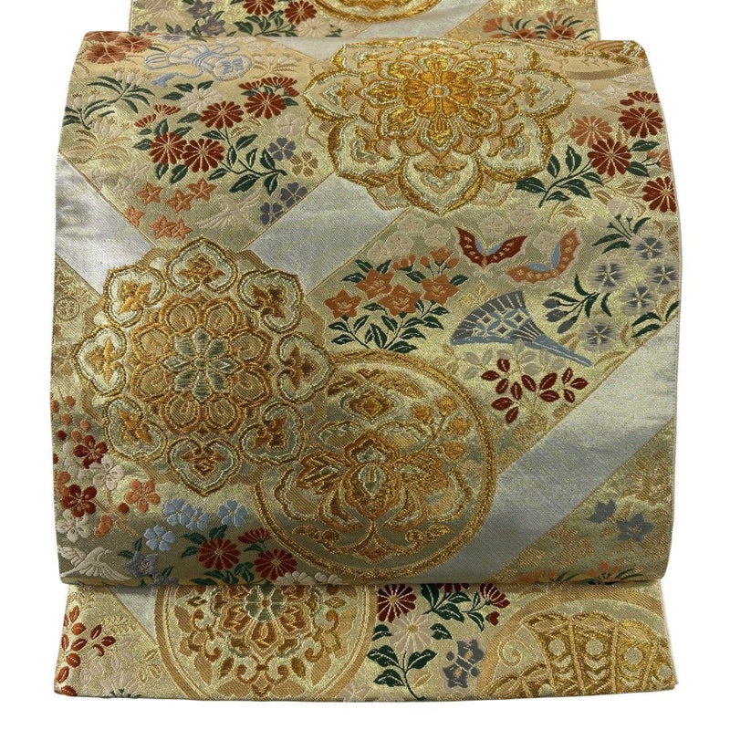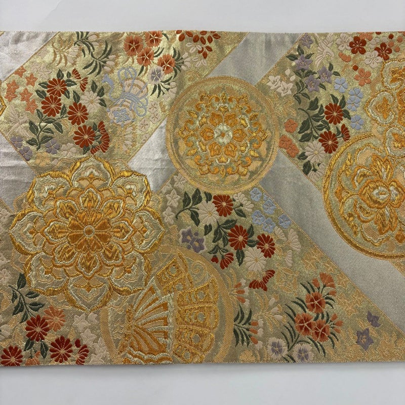 【袋帯】 白系 ベージュ 秀品 A 帯丈436cm以上 7990-9980 美品 二万以下