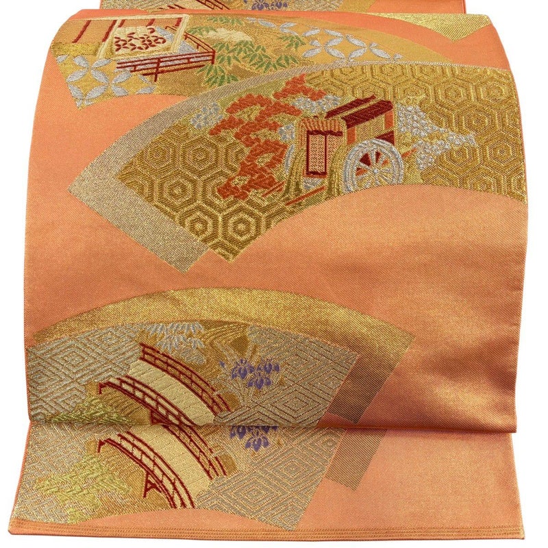 【袋帯】 赤系 オレンジ 秀品 A 帯丈426cm~435cm 7990-9980 美品 二万以下