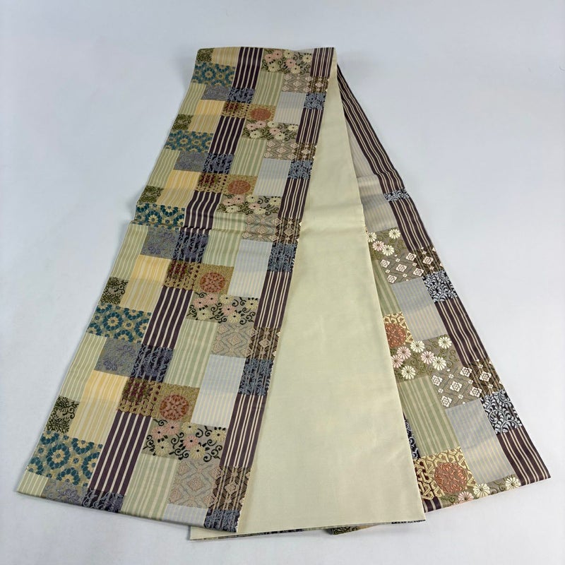 普段使いでお使いいただける袋帯でございます。 カジュアルな装いに合わせてお使いください。 お太鼓柄部分に小さなシミがございます。 裏地に線シミがございます。 リユース品としては良い状態で、まだまだご活用頂けると思われます。 ※なお、厳しく商品の状態確認を行っておりますが、記載の汚れ以外にも見落とし箇所がある可能性がある旨ご了承いただけますと幸いです。 沢山の商品の中からご覧いただき誠にありがとうございます。 【PR2】