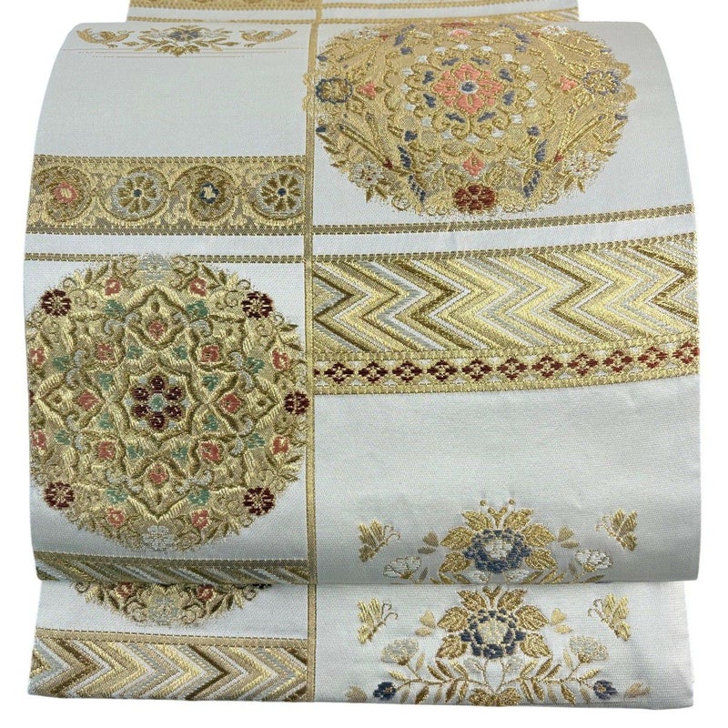 【袋帯】 白系 ベージュ 秀品 A 帯丈436cm以上 7990-9980 美品 二万以下