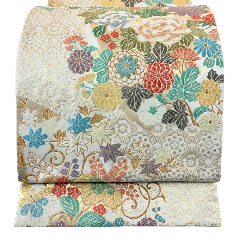【袋帯】 白系 クリーム 秀品 A 帯丈436cm以上 7990-9980 美品 二万以下