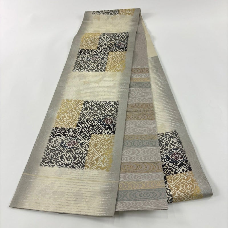 【袋帯】 灰色系 灰白 秀品 A 帯丈436cm以上 7990-9980 美品 二万以下