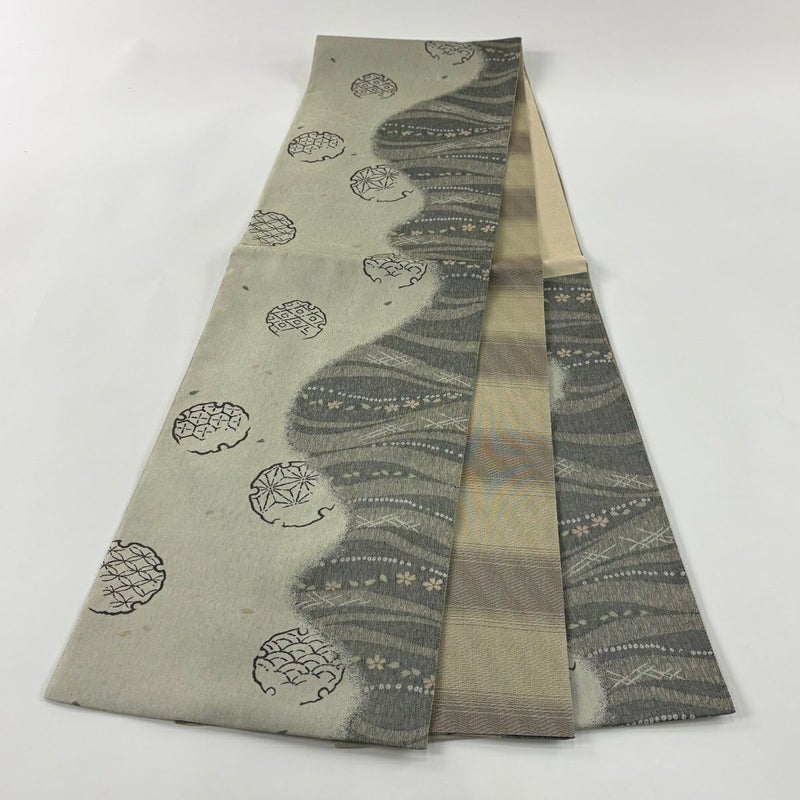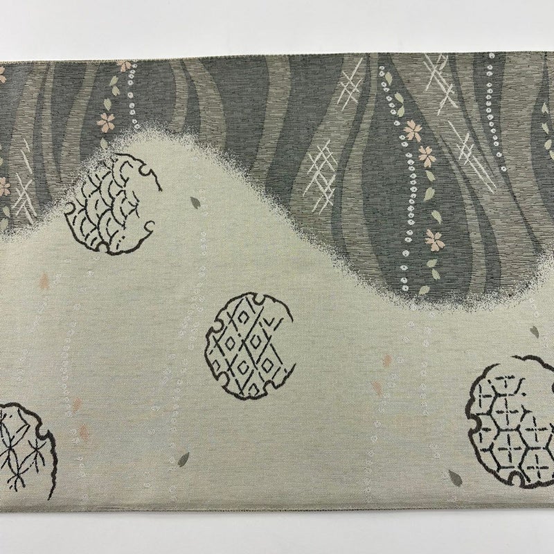 【袋帯】 灰色系 灰茶 秀品 A 帯丈436cm以上 7990-9980 美品 二万以下