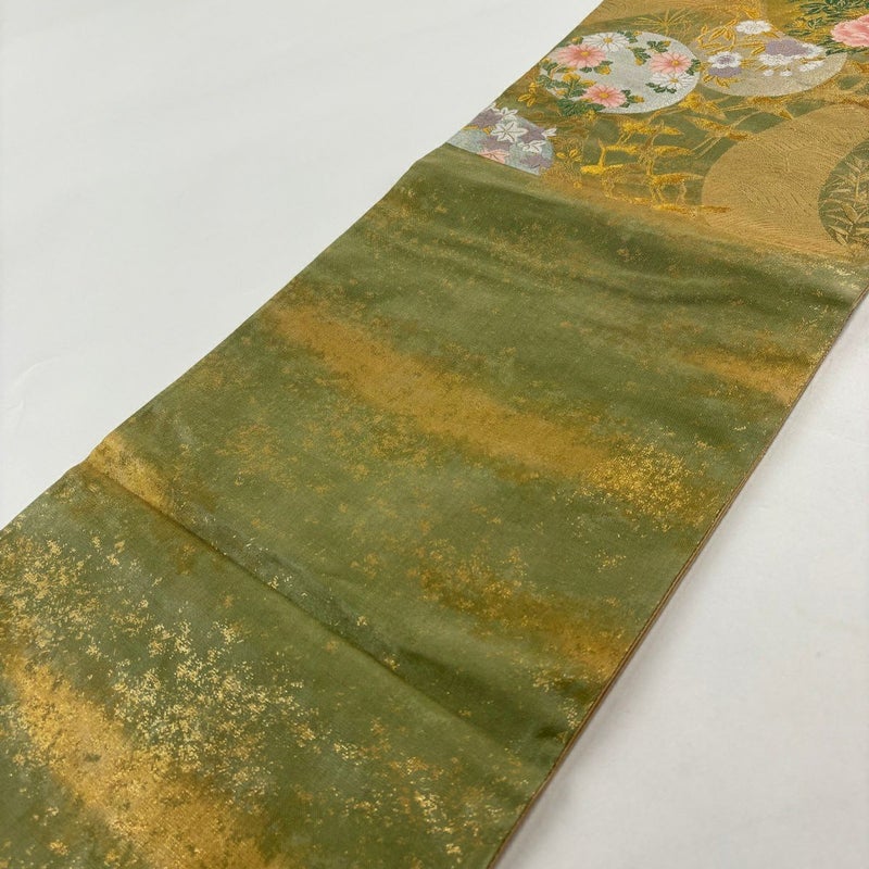 【袋帯】 灰色系 灰緑 秀品 A 帯丈436cm以上 7990-9980 美品 二万以下