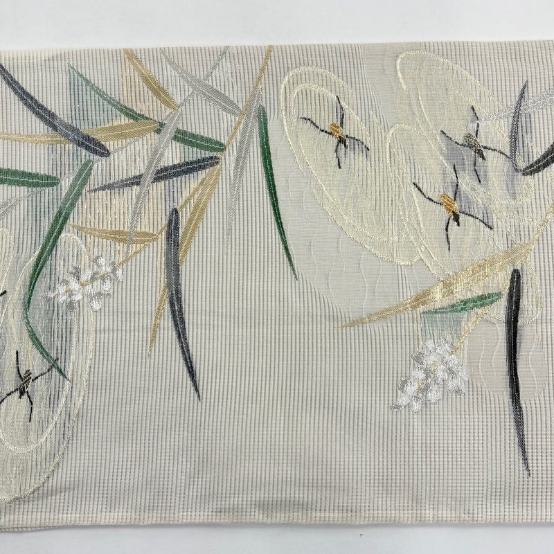 夏帯でございます。 セミフォーマルでお使いいただける袋帯でございます。 見る人に重たい印象を感じさせない女性ならではの、気品豊かな一品です。 締め跡がございます。 表地所々に帯芯の生地ヨレ、表地所々にシワがございます。 裏地所々に帯芯の生地ヨレ、裏地所々にシワがございます。 ご購入の際はその点ご留意ください。 ※なお、厳しく商品の状態確認を行っておりますが、記載の汚れ以外にも見落とし箇所がある可能性がある旨ご了承いただけますと幸いです。 沢山の商品の中からご覧いただき誠にありがとうございます。