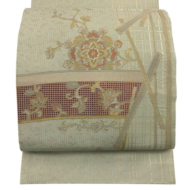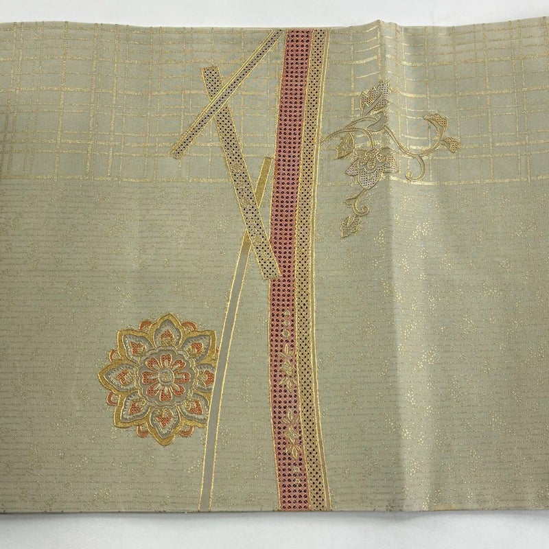 【袋帯】 白系 ベージュ 秀品 B 帯丈436cm以上 4000-7980 二万以下