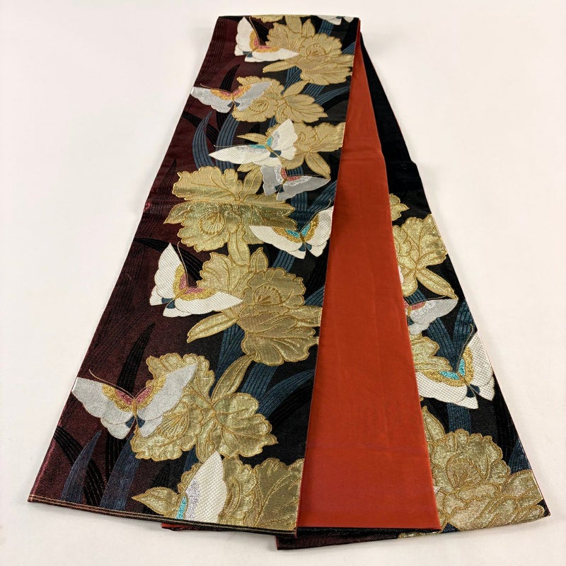 【袋帯】 赤系 赤黒 秀品 A 帯丈436cm以上 7990-9980 美品 二万以下