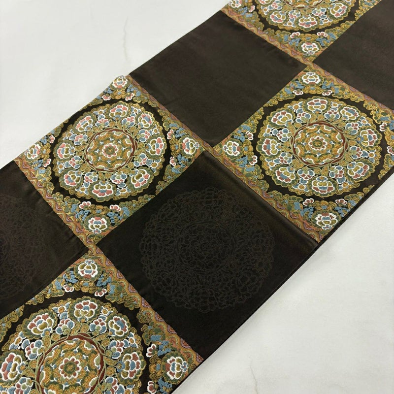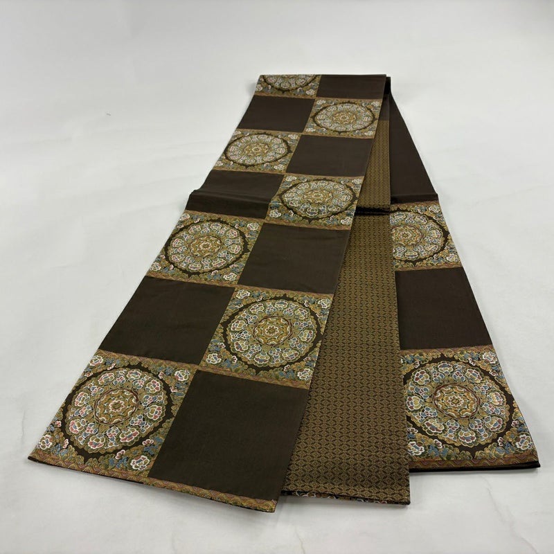 【袋帯】 茶系 焦茶色 秀品 A 帯丈426cm~435cm 7990-9980 美品 二万以下
