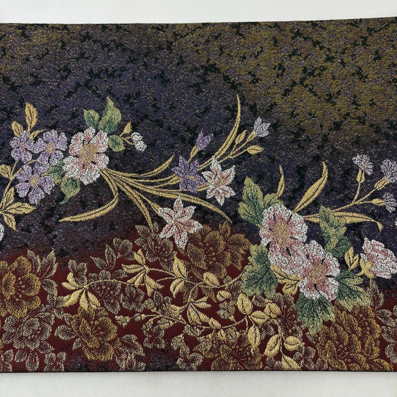セミフォーマルでお使いいただける袋帯でございます。 見る人に重たい印象を感じさせない女性ならではの、気品豊かな一品です。 お太鼓垂先間に生地のヨレがございます。 リユース品としては目立った染み傷なく、状態の良いお品でございます。 ※なお、厳しく商品の状態確認を行っておりますが、記載の汚れ以外にも見落とし箇所がある可能性がある旨ご了承いただけますと幸いです。 沢山の商品の中からご覧いただき誠にありがとうございます。