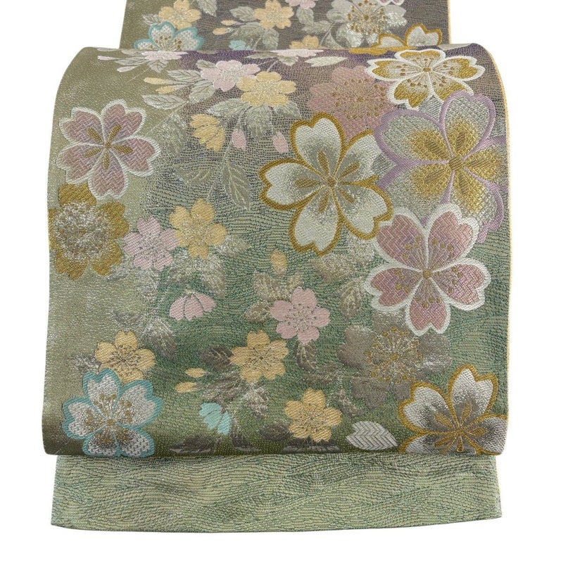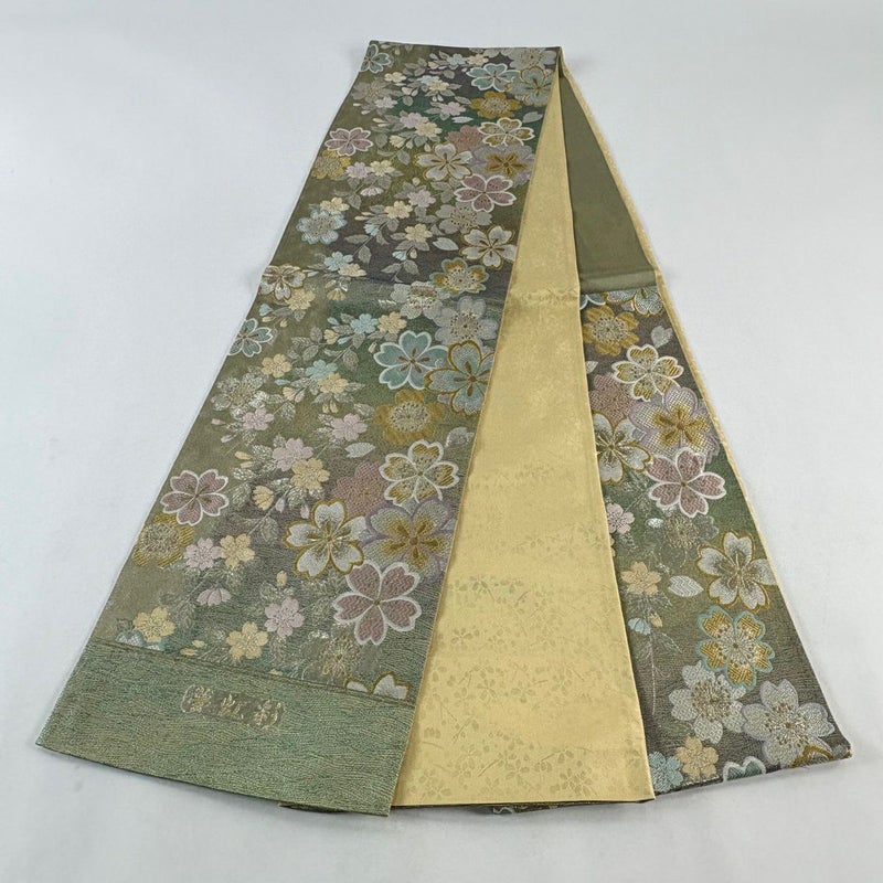 【袋帯】 緑系 よもぎ色 秀品 B 帯丈436cm以上 4000-7980 二万以下
