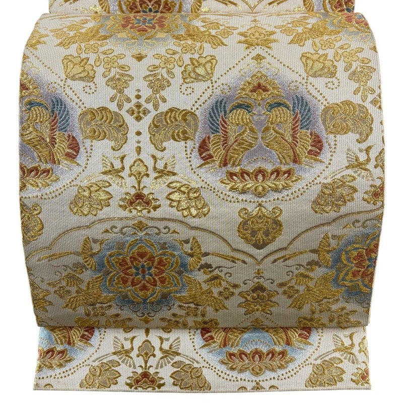 【袋帯】 白系 ベージュ 秀品 A 帯丈436cm以上 7990-9980 美品 二万以下