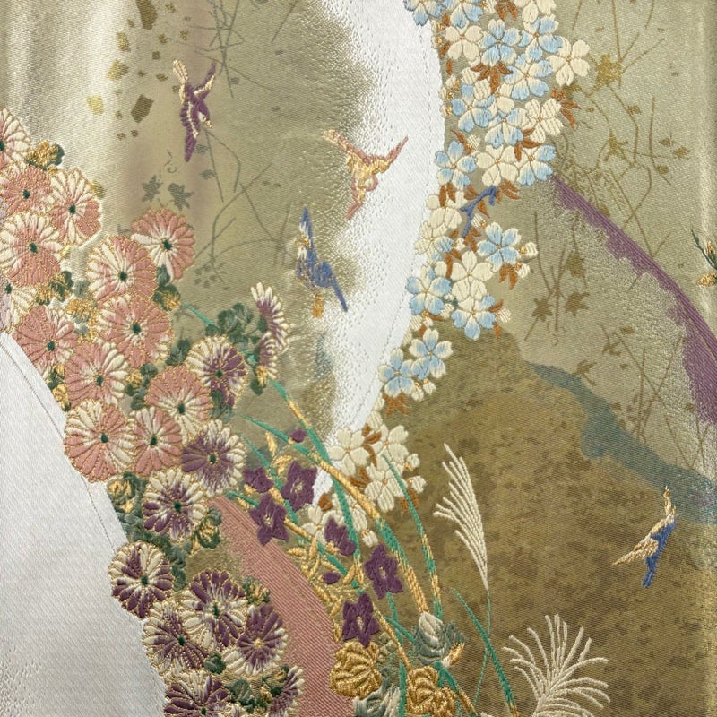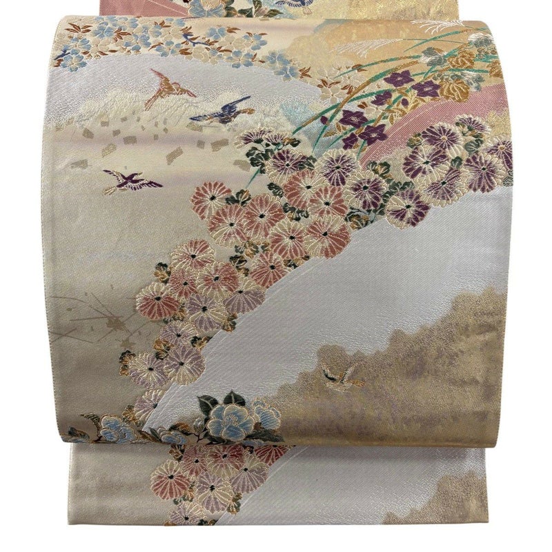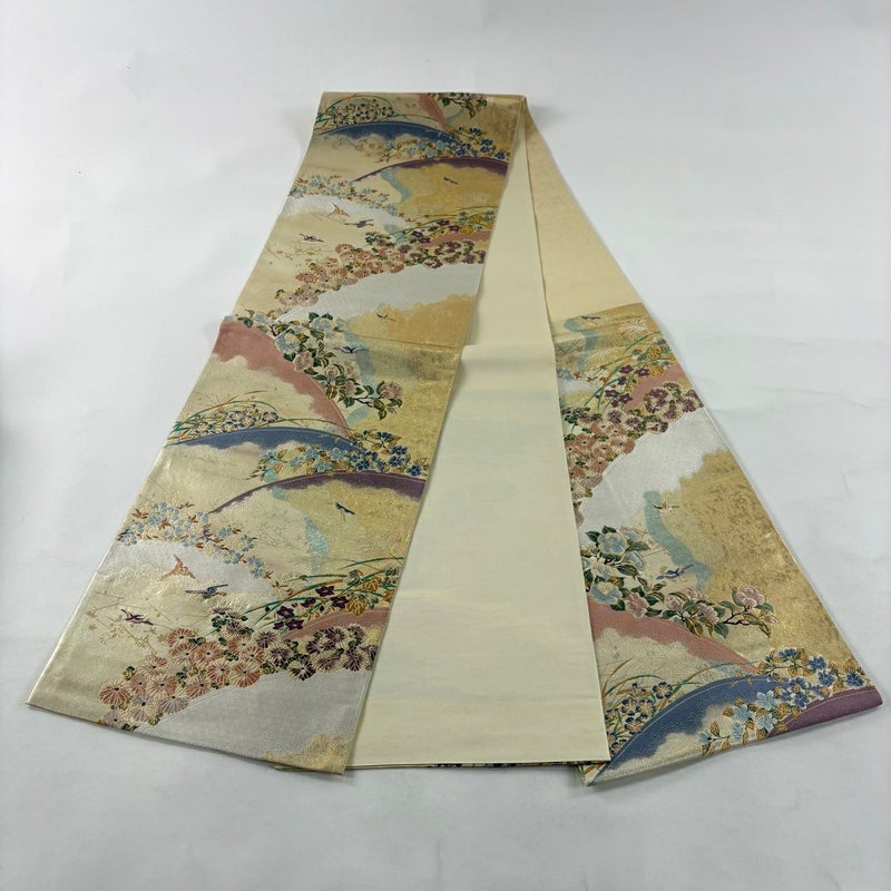 【着物ランク】秀品 【素材】正絹 【帯丈】約434cm 【帯幅】約30.5cm 【帯仕立て】仕立て上がり 【状態ランク】ランクB 【帯着用シーン】フォーマル(留袖・振袖・訪問着)
