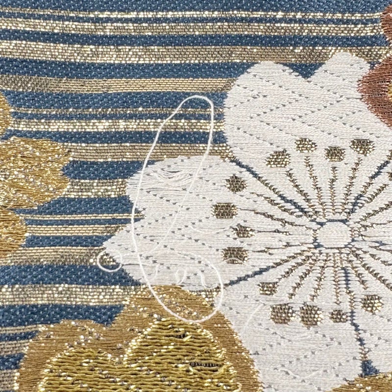 おめでたい席に相応しい意匠の袋帯でございます。 格式高いお席にもお使いいただけますので、お見逃しのないようお願いいたします。 帯芯が入っておりません。 締め跡がございます。 前柄お太鼓間に糸のほつれ、表地所々に刺繍糸のゆるみ、手先の織り出し口に仕立ての歪みがございます。 リユース品としては良い状態で、まだまだご活用頂けると思われます。 ※なお、厳しく商品の状態確認を行っておりますが、記載の汚れ以外にも見落とし箇所がある可能性がある旨ご了承いただけますと幸いです。 沢山の商品の中からご覧いただき誠にありがとうございます。