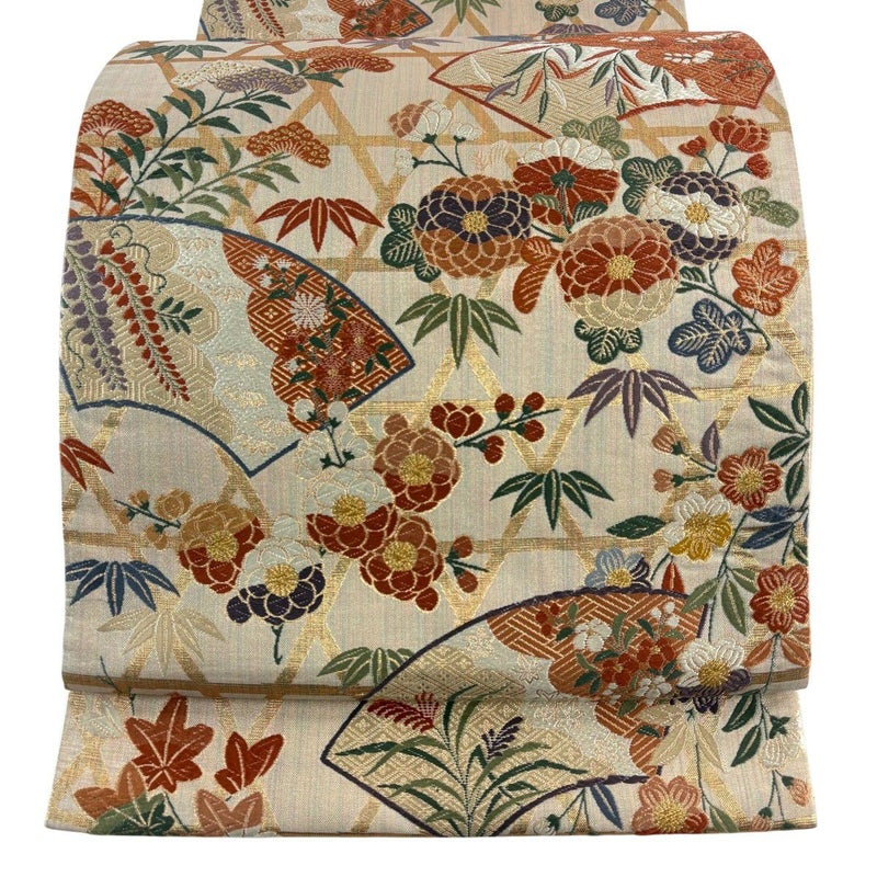 【袋帯】 白系 ベージュ 秀品 A 帯丈426cm~435cm 7990-9980 美品 二万以下