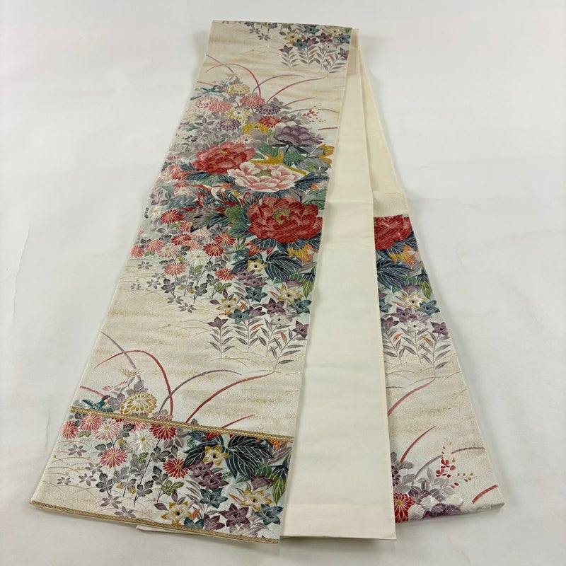 【袋帯】 白系 クリーム 秀品 A 帯丈426cm~435cm 7990-9980 美品 二万以下